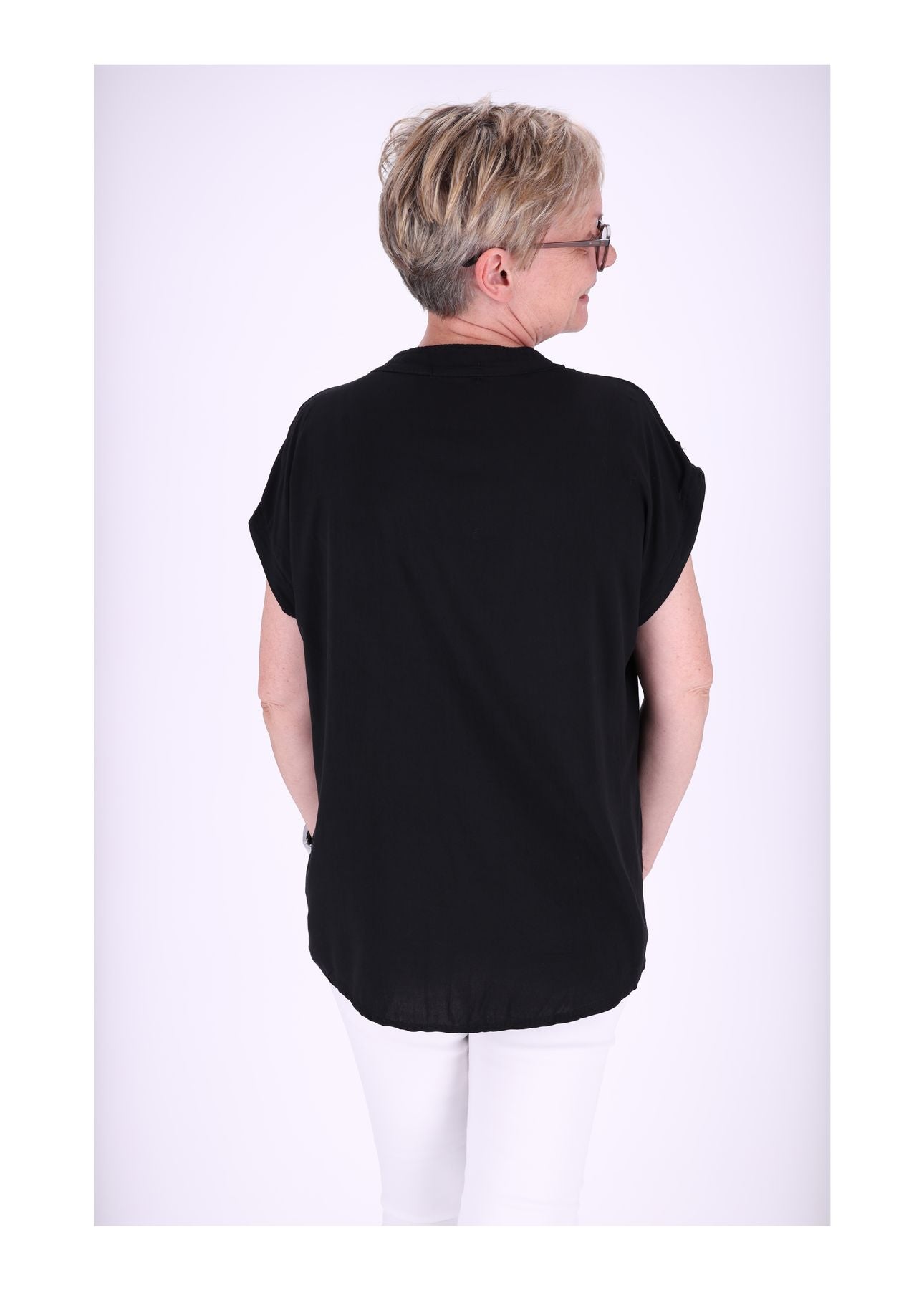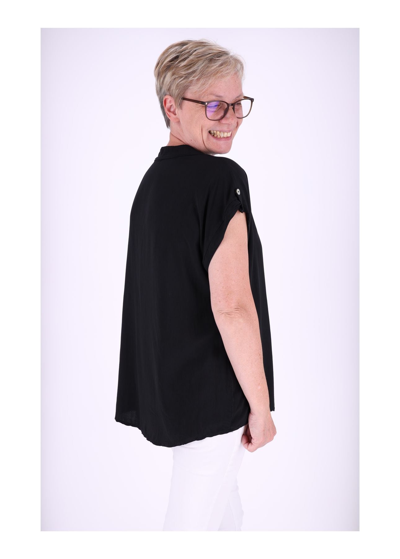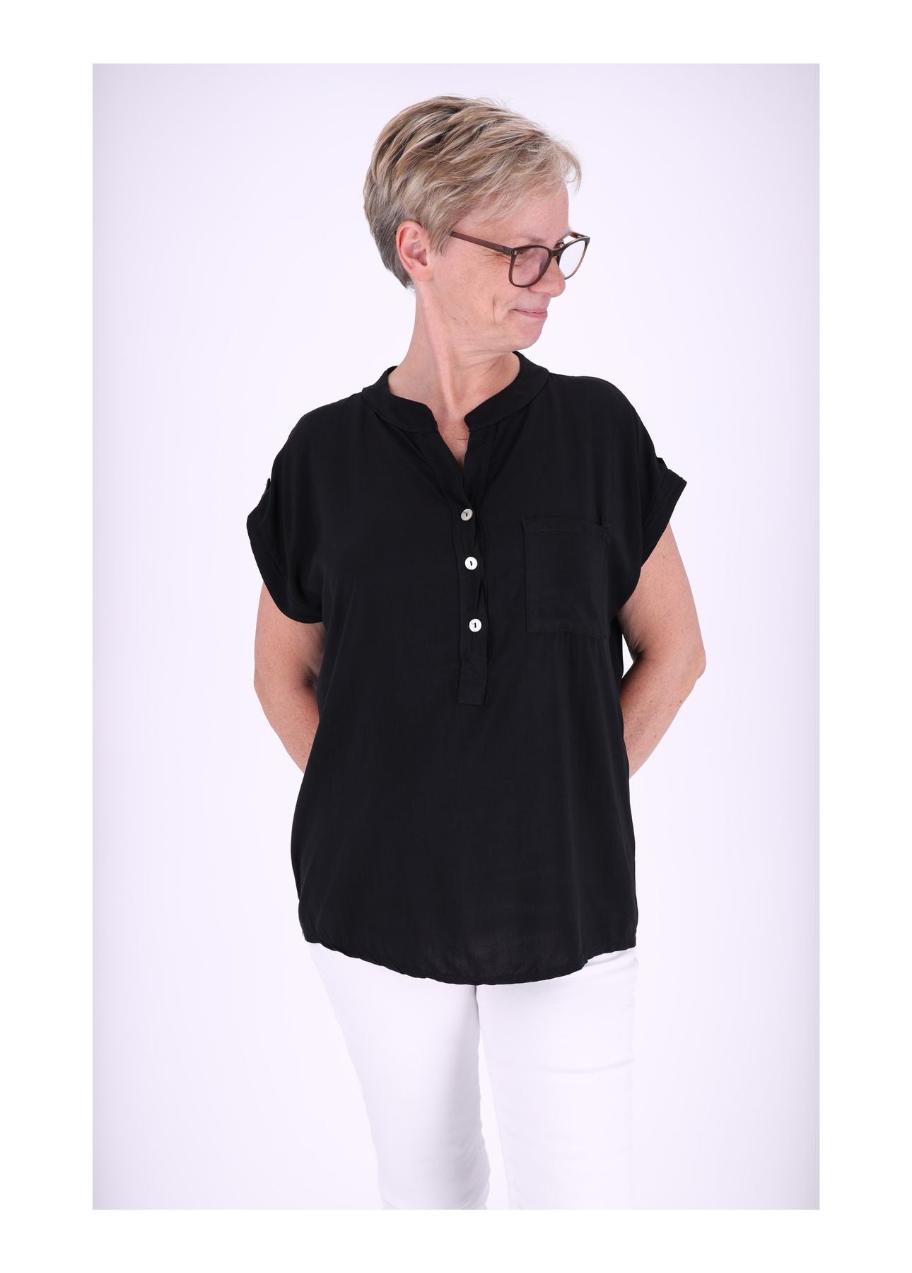 Damen T-Shirt mit V-Ausschnitt & Knopfleiste – angeschnittene Ärmel & Brusttasche aus 100% Viskose