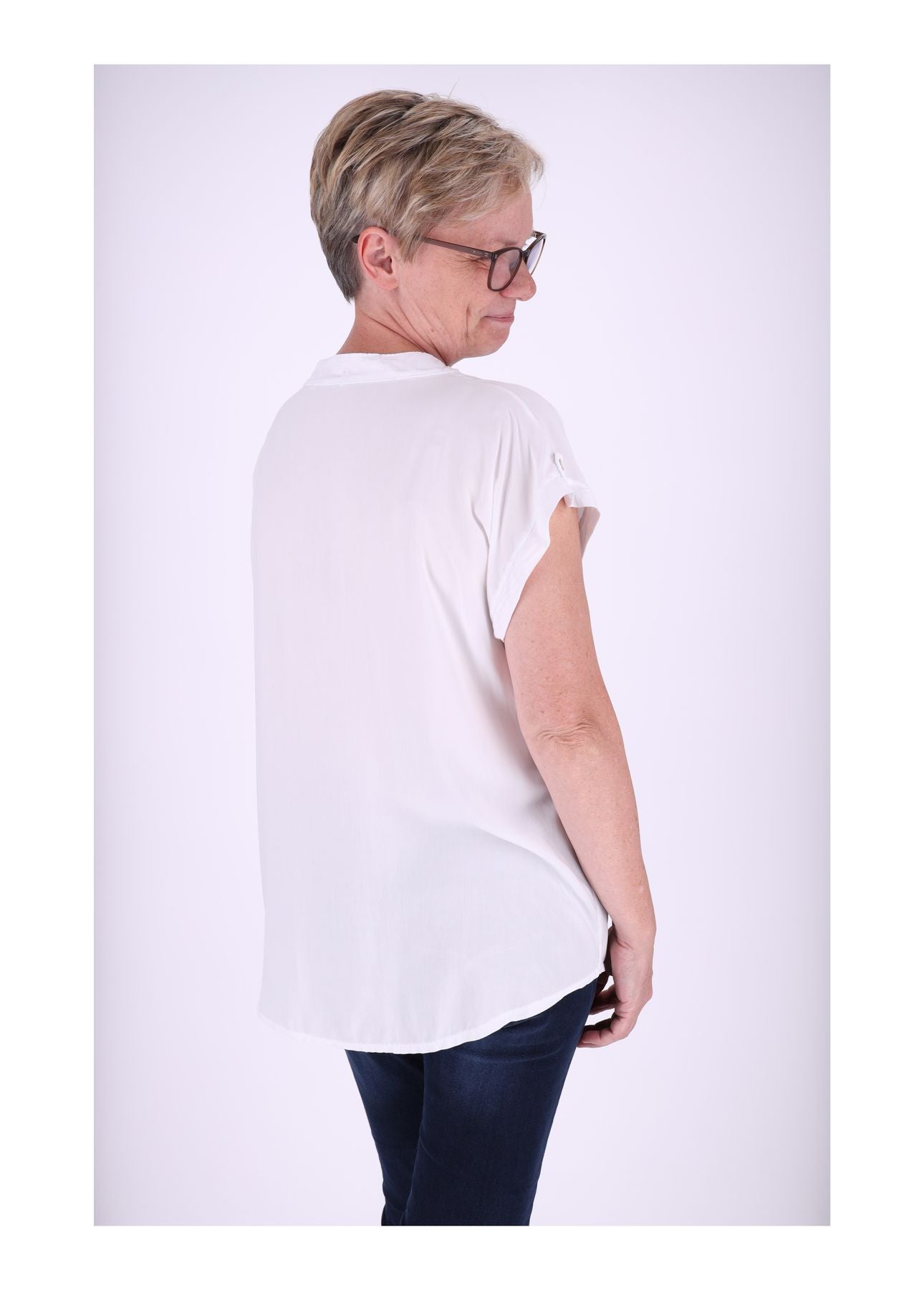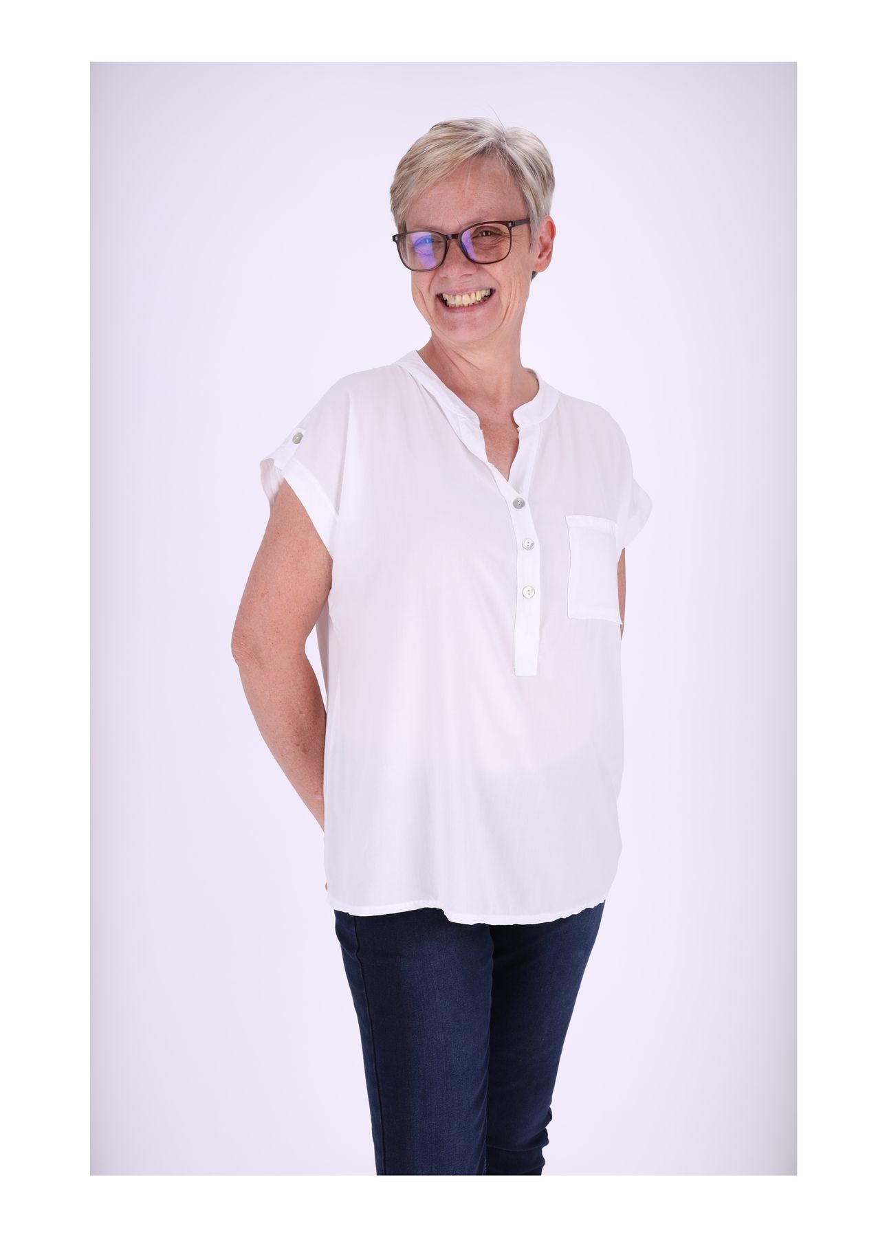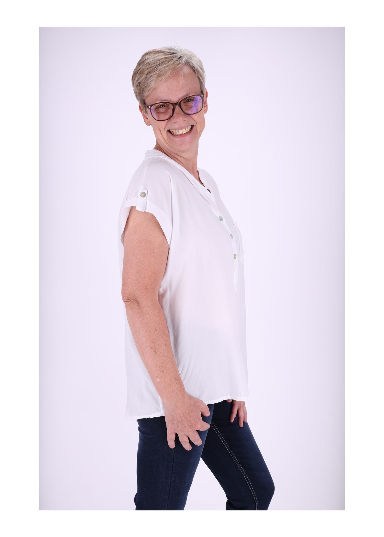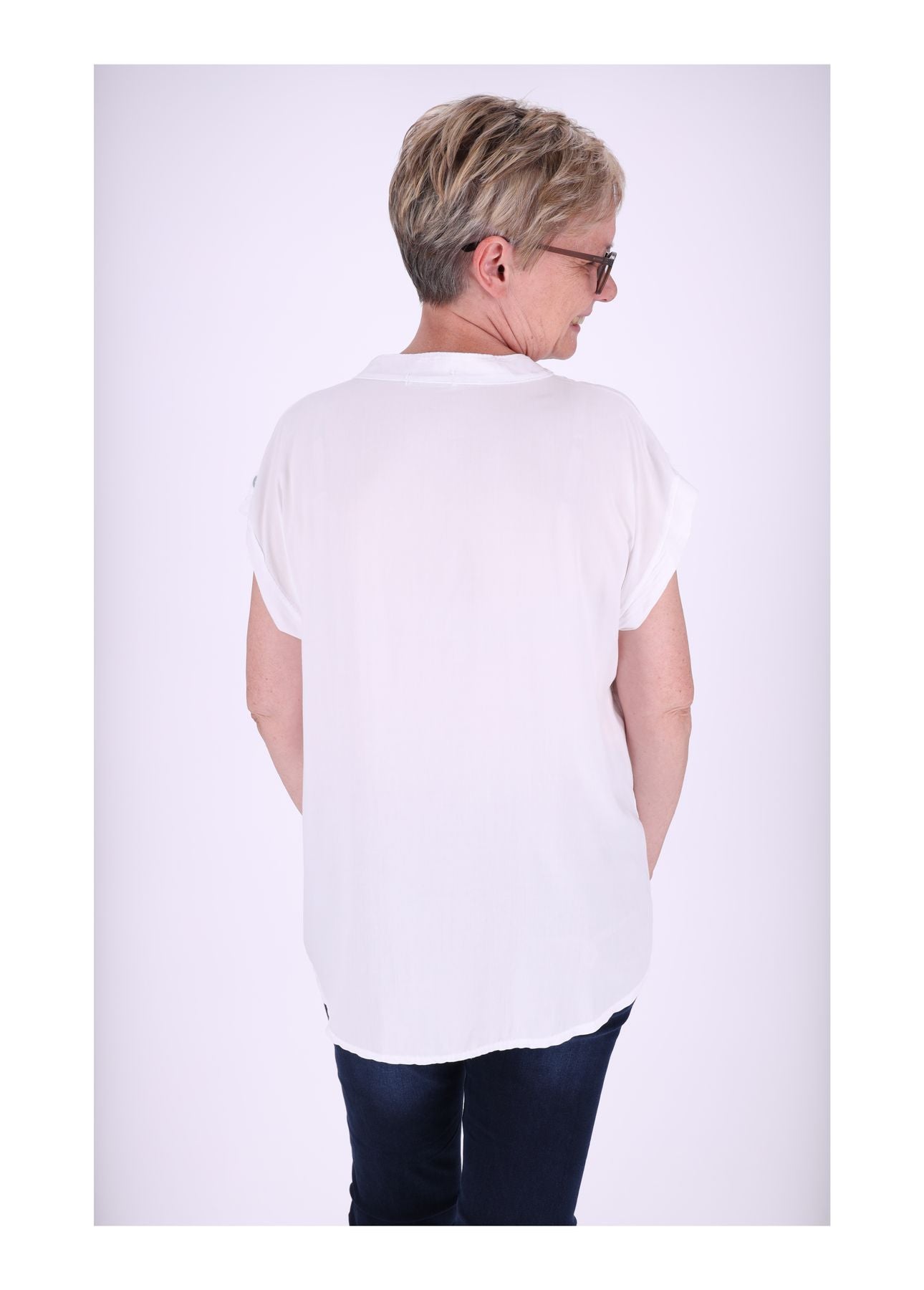 Damen T-Shirt mit V-Ausschnitt & Knopfleiste – angeschnittene Ärmel & Brusttasche aus 100% Viskose