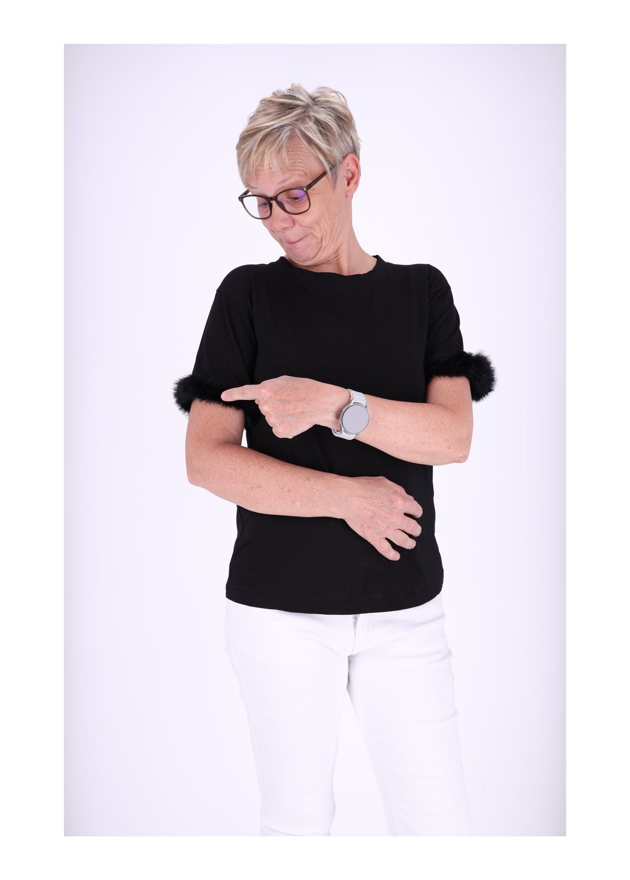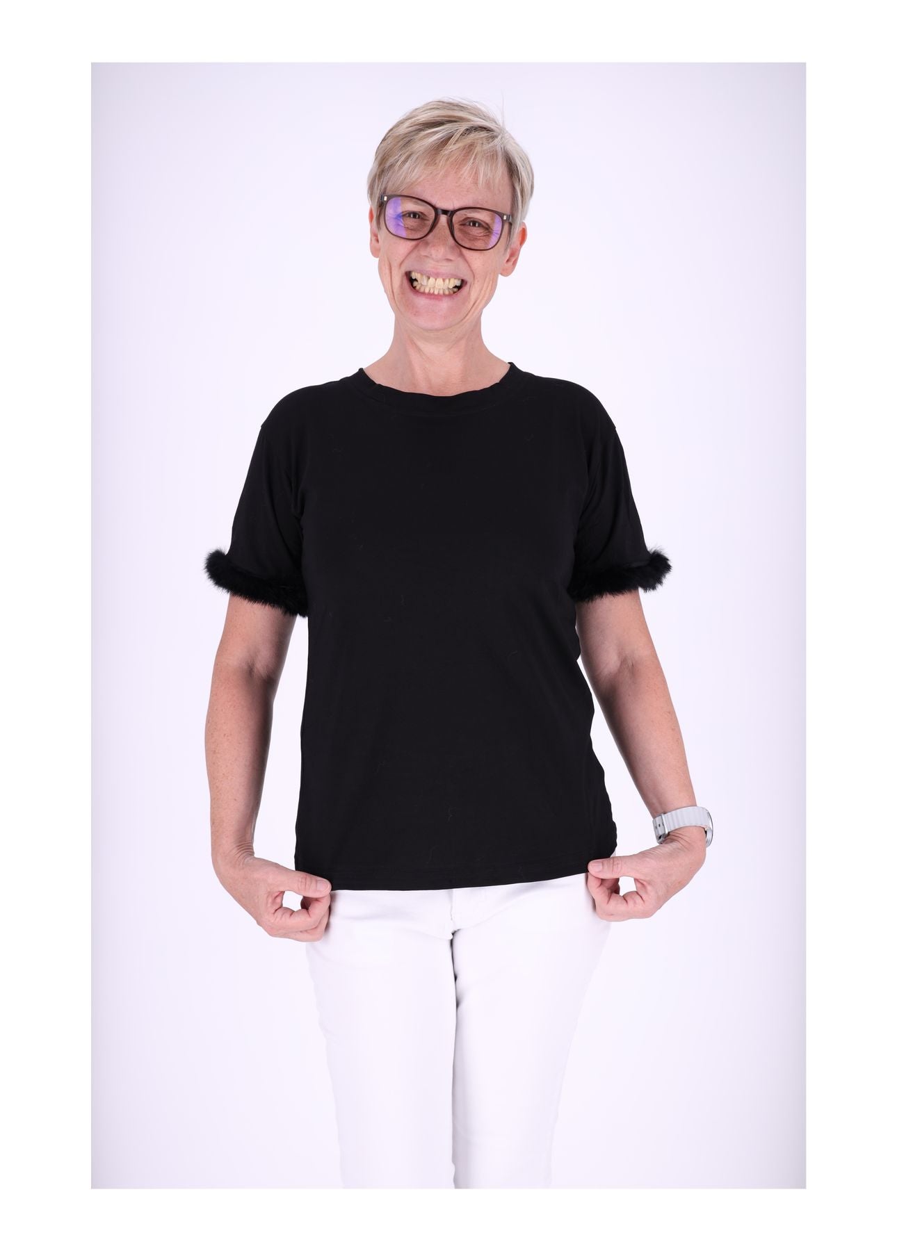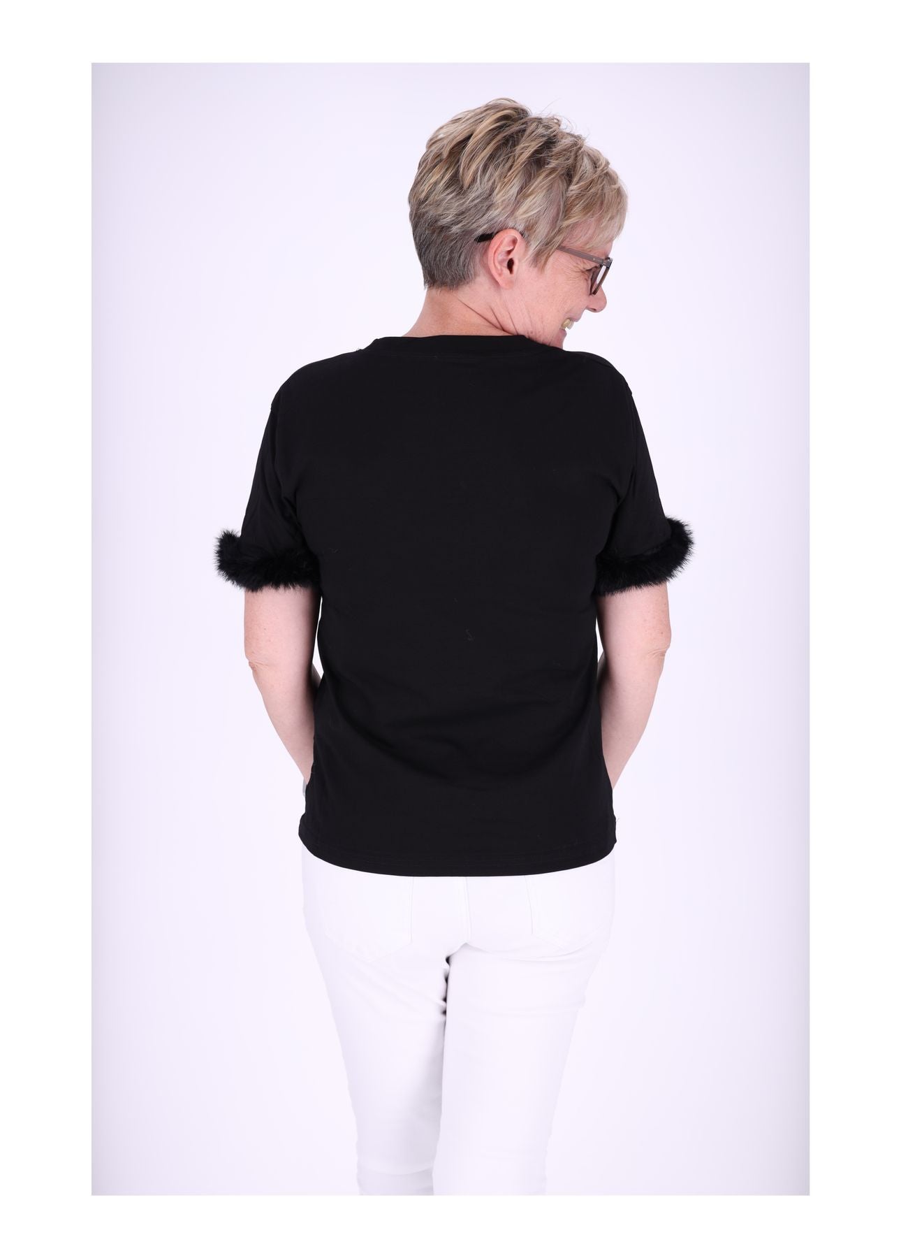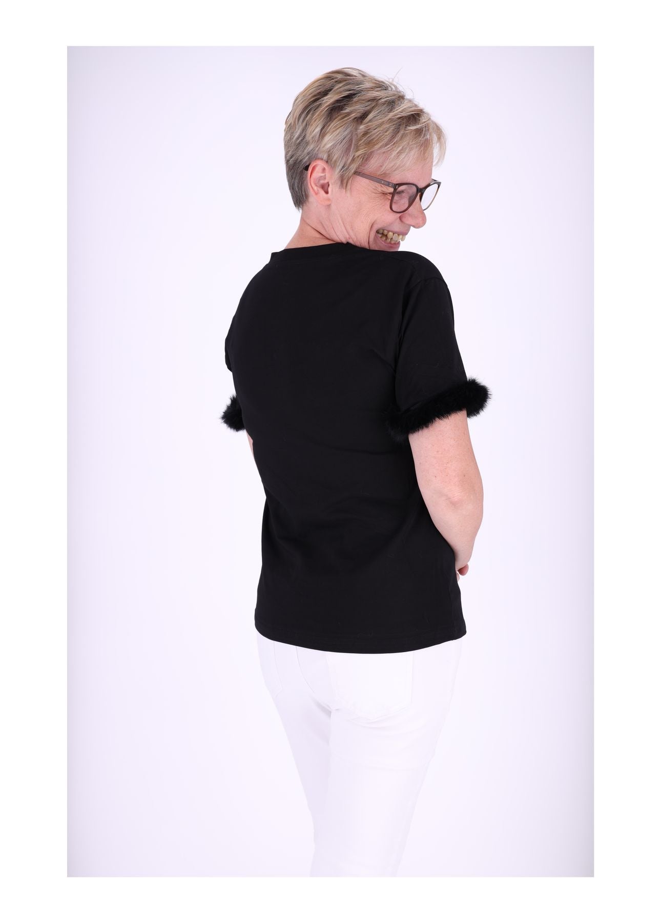 T-Shirt Damen Fellbesatz am Ärmel