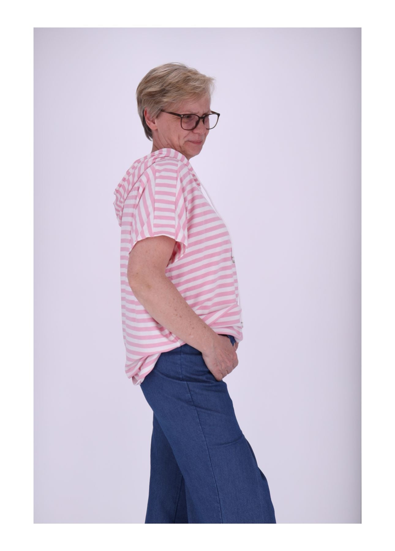 Dieses sommerliche Sport-T-Shirt für Damen vereint Funktionalität mit einem trendigen Look. Mit lässigen Streifen, einem lockeren Schnitt und einer praktischen Kapuze ist es das perfekte Oberteil für sportliche Freizeitmomente, entspannte Spaziergänge oder aktive Urlaubstage. Der weiche, leichte Stoff sorgt für ein luftiges Tragegefühl – selbst bei warmen Temperaturen.