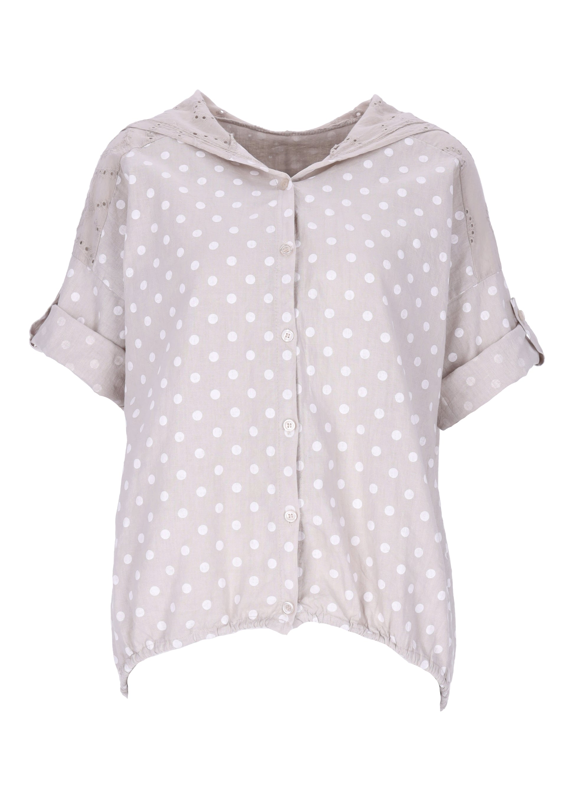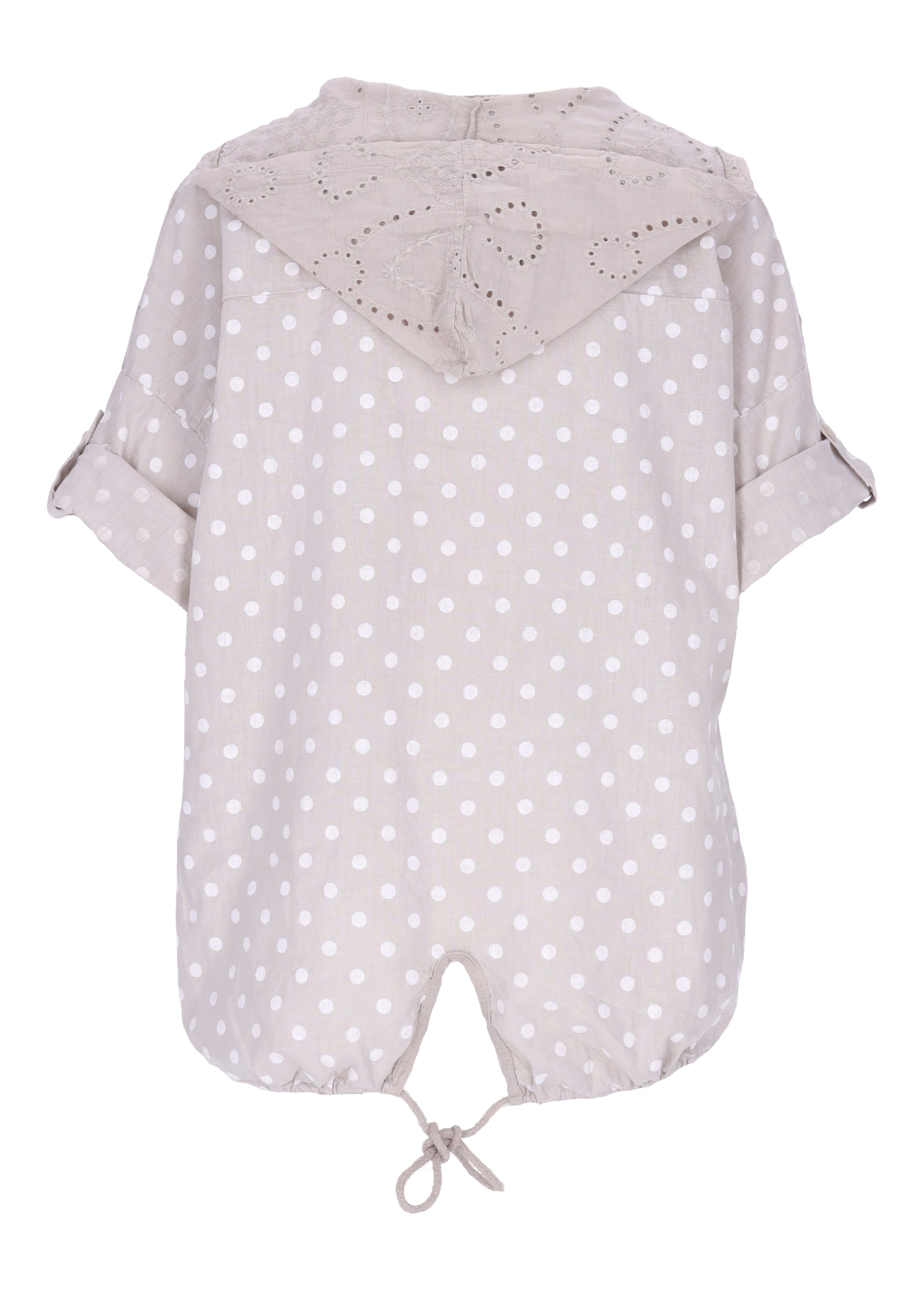 Die durchgehende Knopfleiste verleiht diesem Shirt einen Hauch von Eleganz und ermöglicht es Ihnen, Ihren Look nach Belieben anzupassen. Die Kapuze verleiht dem Shirt zusätzlich eine sportliche Note. Der Tunnelzug unten ermöglicht es Ihnen, die Passform individuell anzupassen. Das gepunktete Muster verleiht diesem Shirt einen verspielten Charme und setzt stilvolle Akzente.