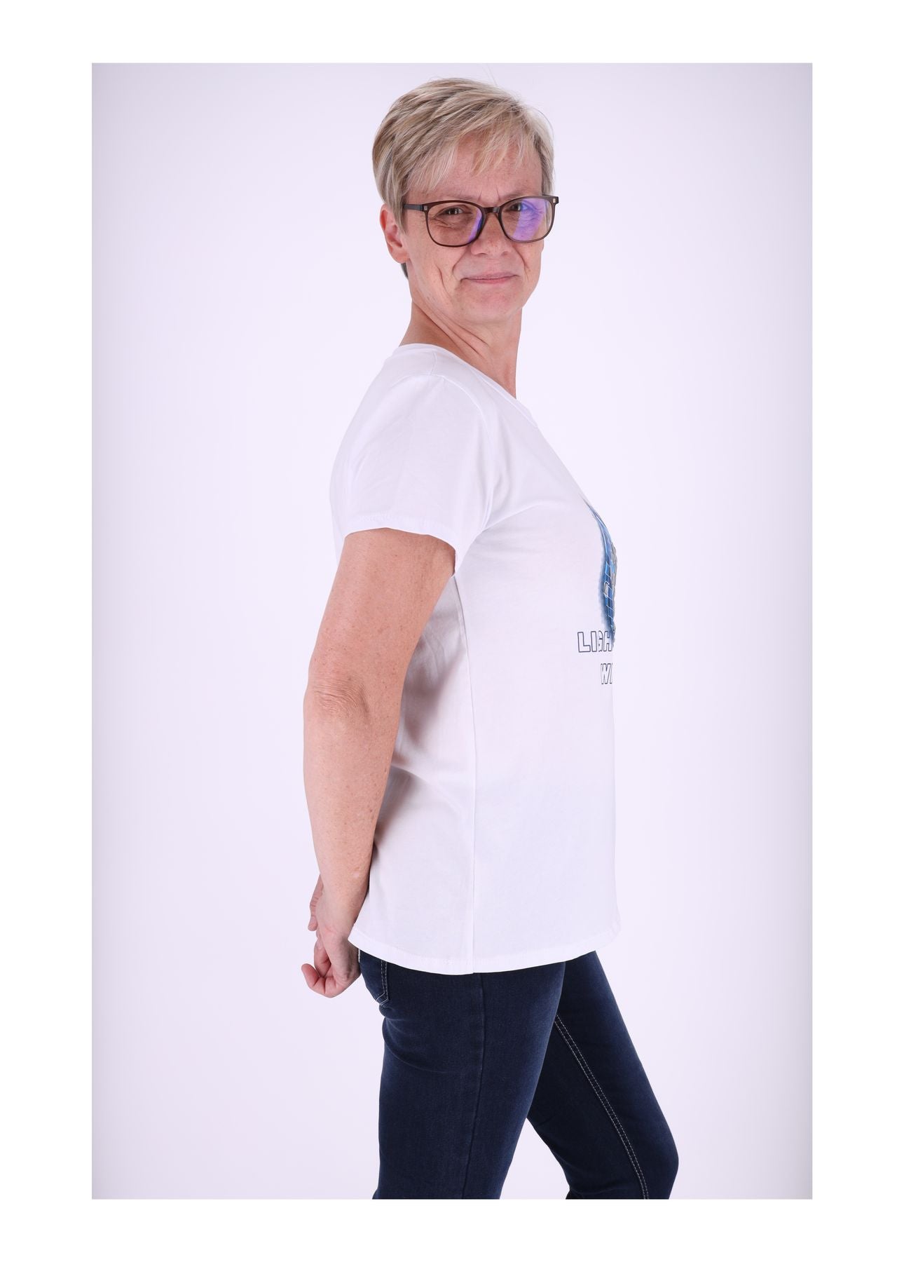Dieses Print-T-Shirt für Damen lässt sich vielseitig kombinieren – ob zu Jeans, Shorts oder Röcken – und setzt mit seinem großen Frontmotiv immer einen trendigen Akzent.