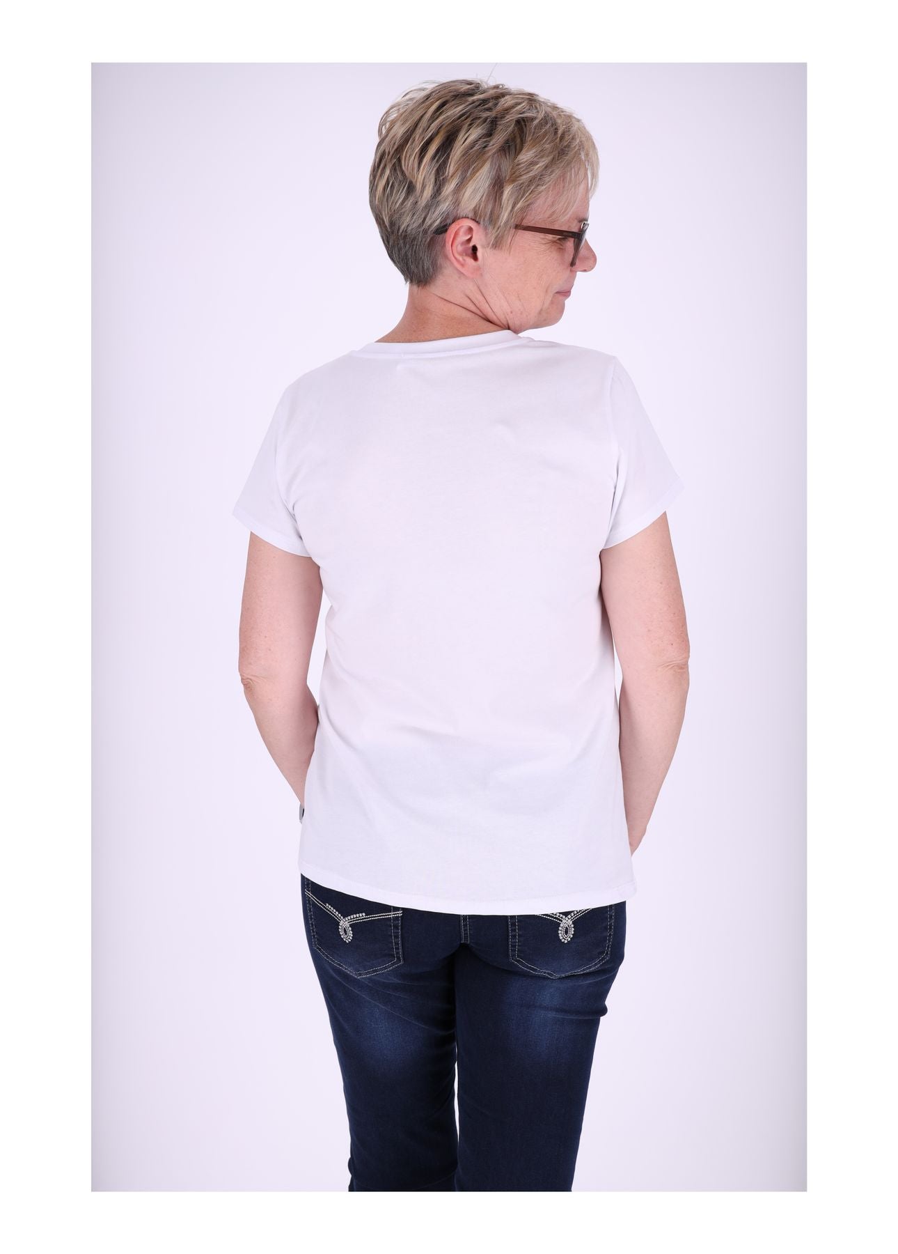 Dieses Print-T-Shirt für Damen lässt sich vielseitig kombinieren – ob zu Jeans, Shorts oder Röcken – und setzt mit seinem großen Frontmotiv immer einen trendigen Akzent.