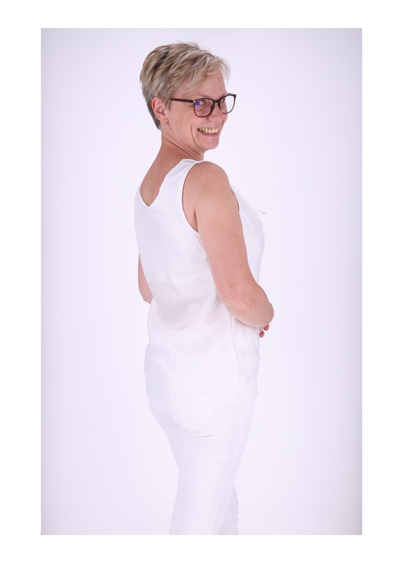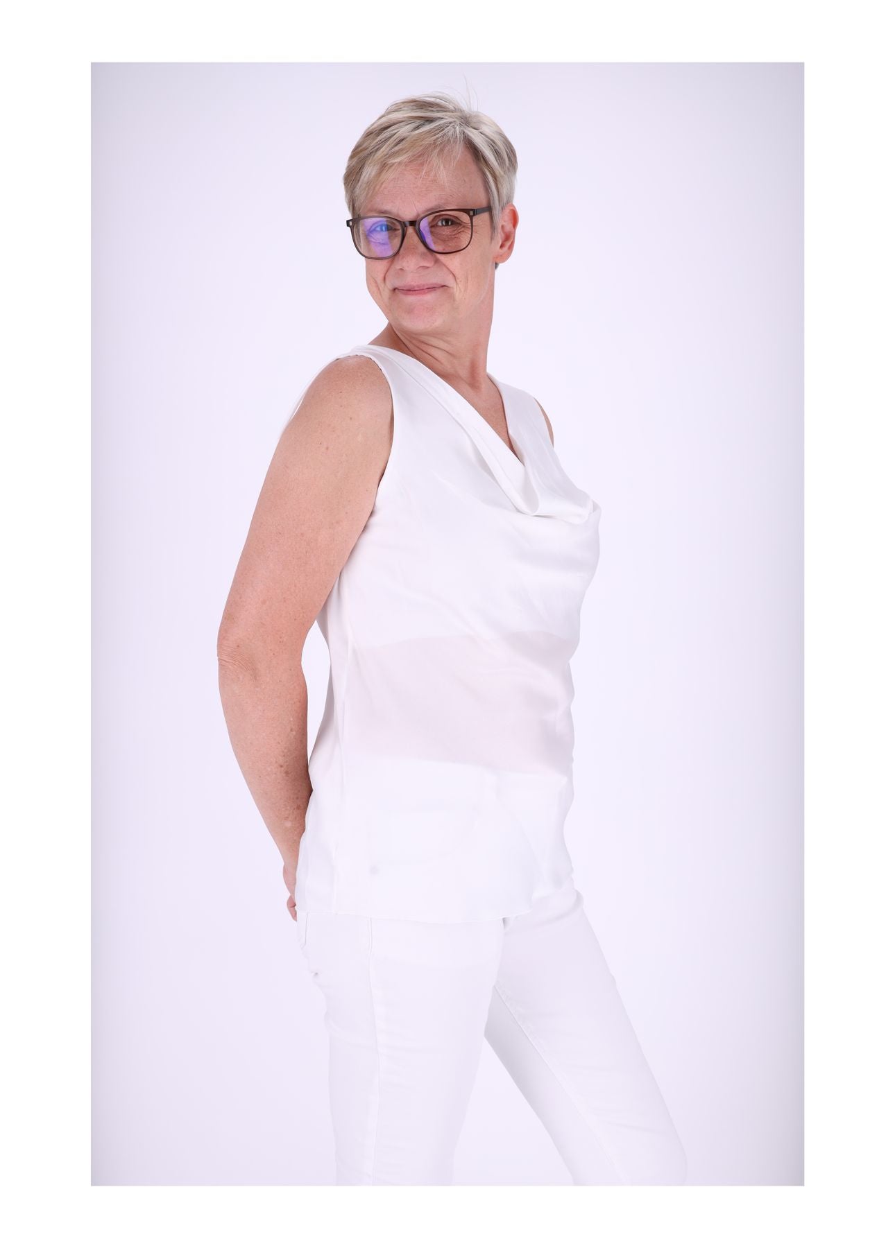 Damen Top mit Wasserfall-Ausschnitt – elegant, ärmellos & vielseitig kombinierbar