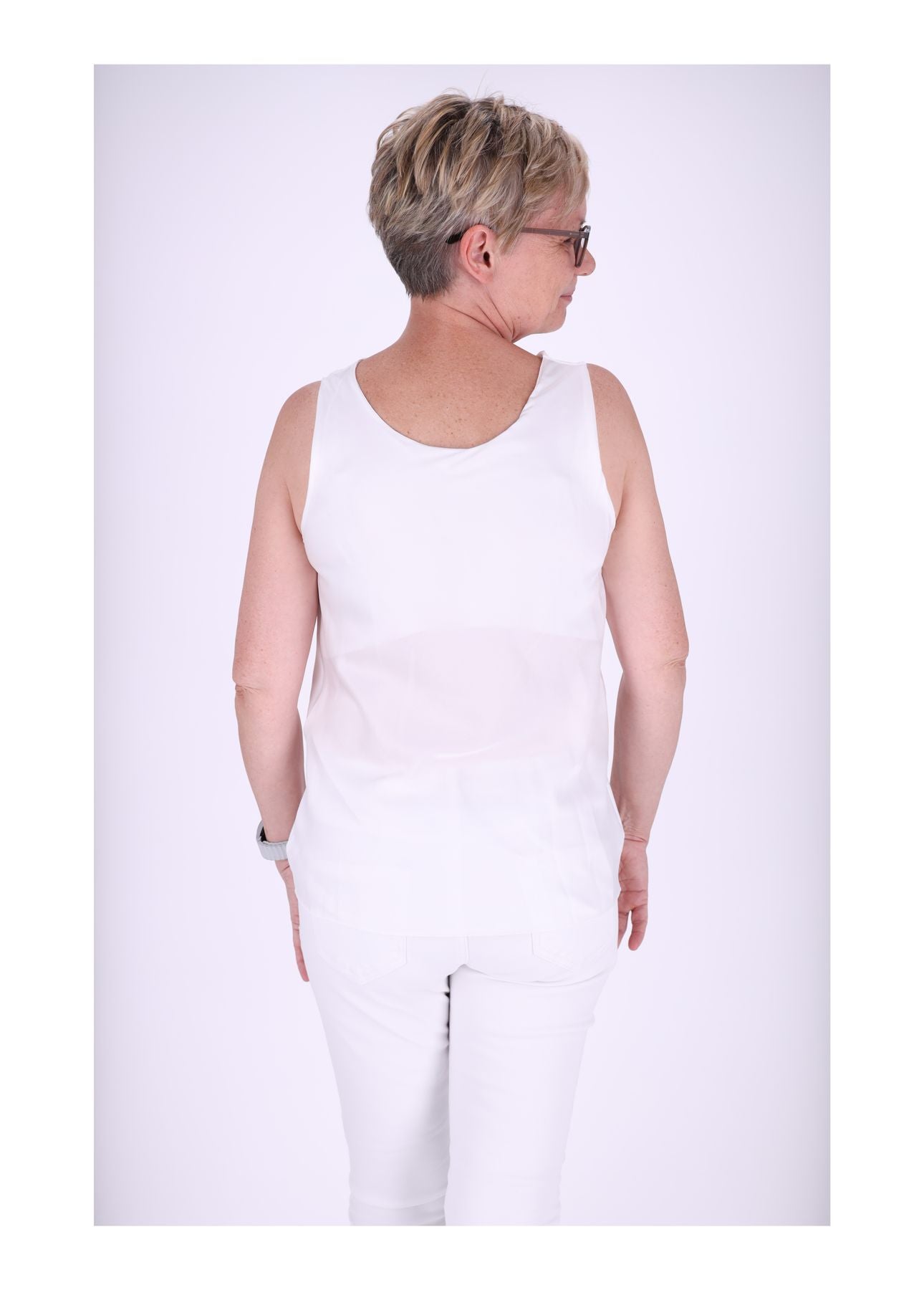 Das ärmellose Damen Top ist aus 100% Polyester gefertigt. Dadurch liegt es weich auf der Haut, ist pflegeleicht und behält auch nach mehrmaligem Tragen und Waschen seine schöne Form. Der leichte Stoff macht es zur idealen Wahl für warme Tage und sorgt gleichzeitig für einen edel glänzenden Fall, der deine Figur sanft umspielt.