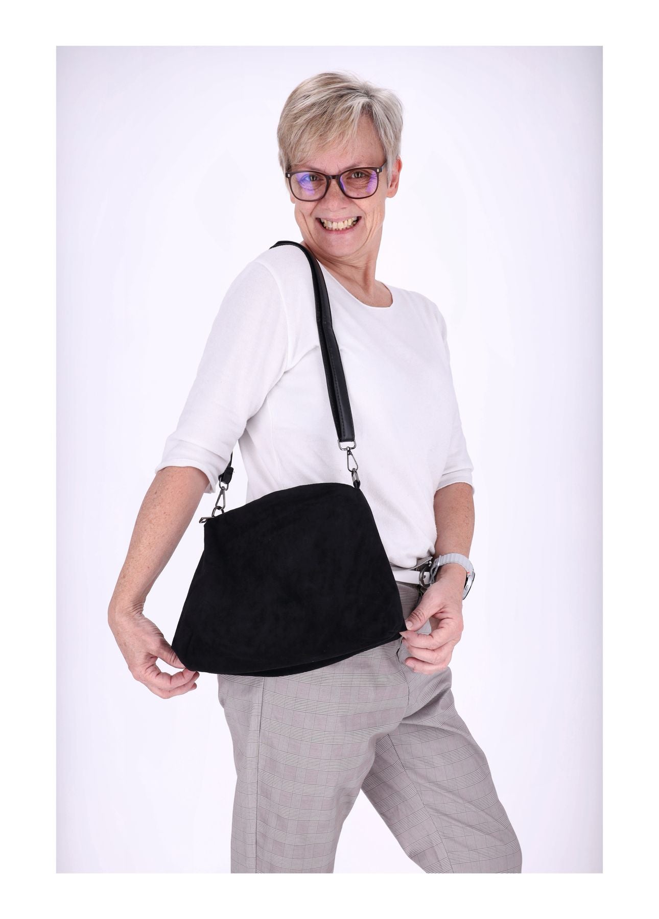 Ob Crossbody oder über der Schulter – dank verstellbarem Trageriemen sitzt sie immer perfekt. Innen sorgen 2 Einschubfächer und 1 Reißverschlussfach dafür, dass alles seinen Platz hat.