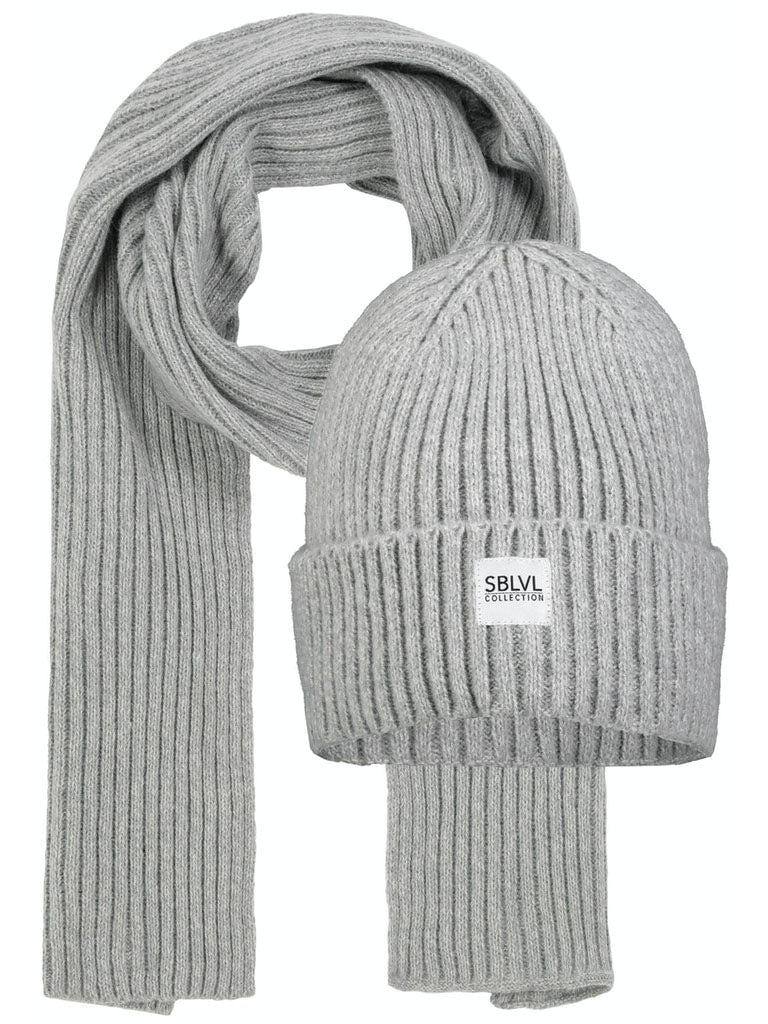 Unisex SET Schal und Beanie mit Badge,Rippstrick, fully fashion
